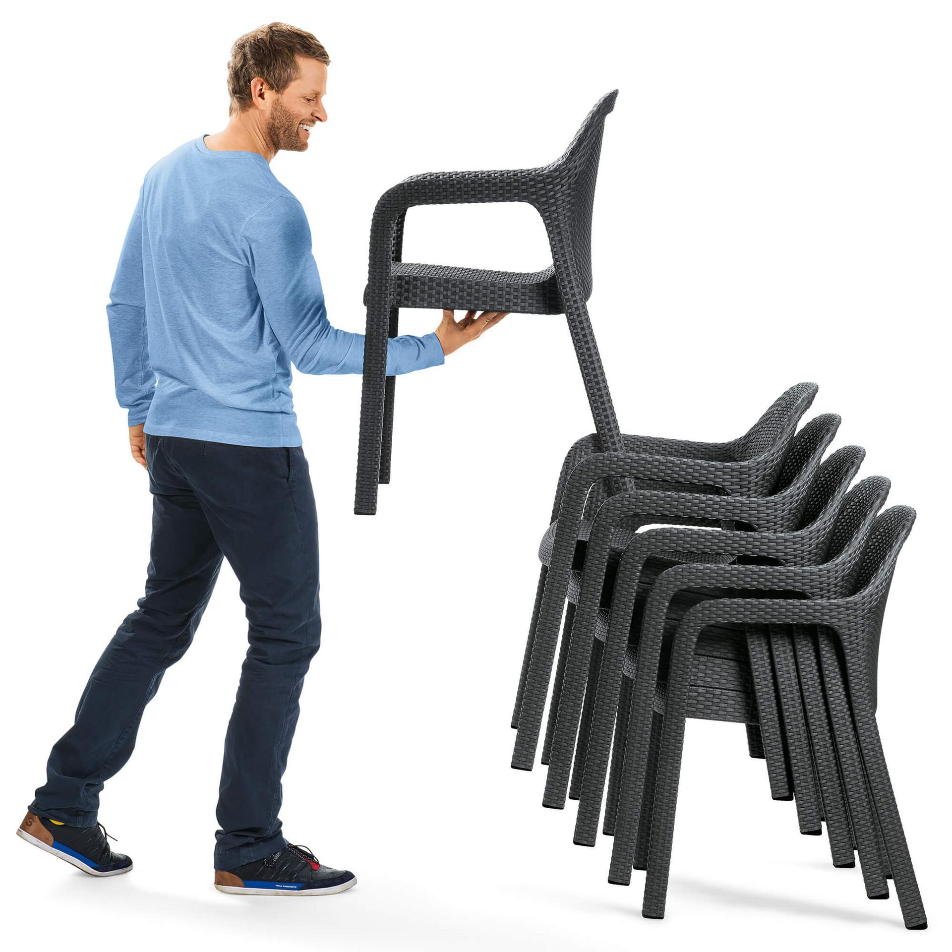 Der bequeme, praktische und hochwertige LECHUZA-Stuhl mit attraktiver Flechtstruktur. Das ergonomische Design und der leicht elastische Bezug sorgen für maximalen Komfort. Das Material ist UV-beständig, frostsicher und leicht zu reinigen. Die Sitzflächen und Rückenlehnen sind atmungsaktiv. Die Stühle sind stapelbar, leicht und einfach zu reinigen.