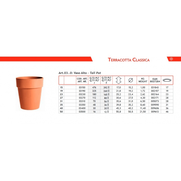 Vaso Alto hohe Tonflasche: Ø15x17 cm