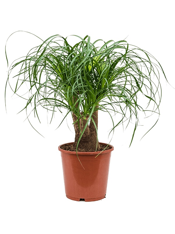 Látványos levelek: A törzs tetejéről hosszú, sötétzöld, fűszerű levelek omlanak le, amelyek egy kis pálmára emlékeztetnek (ezért hívják angolul Ponytail Palm-nak, azaz lófarok-pálmának).