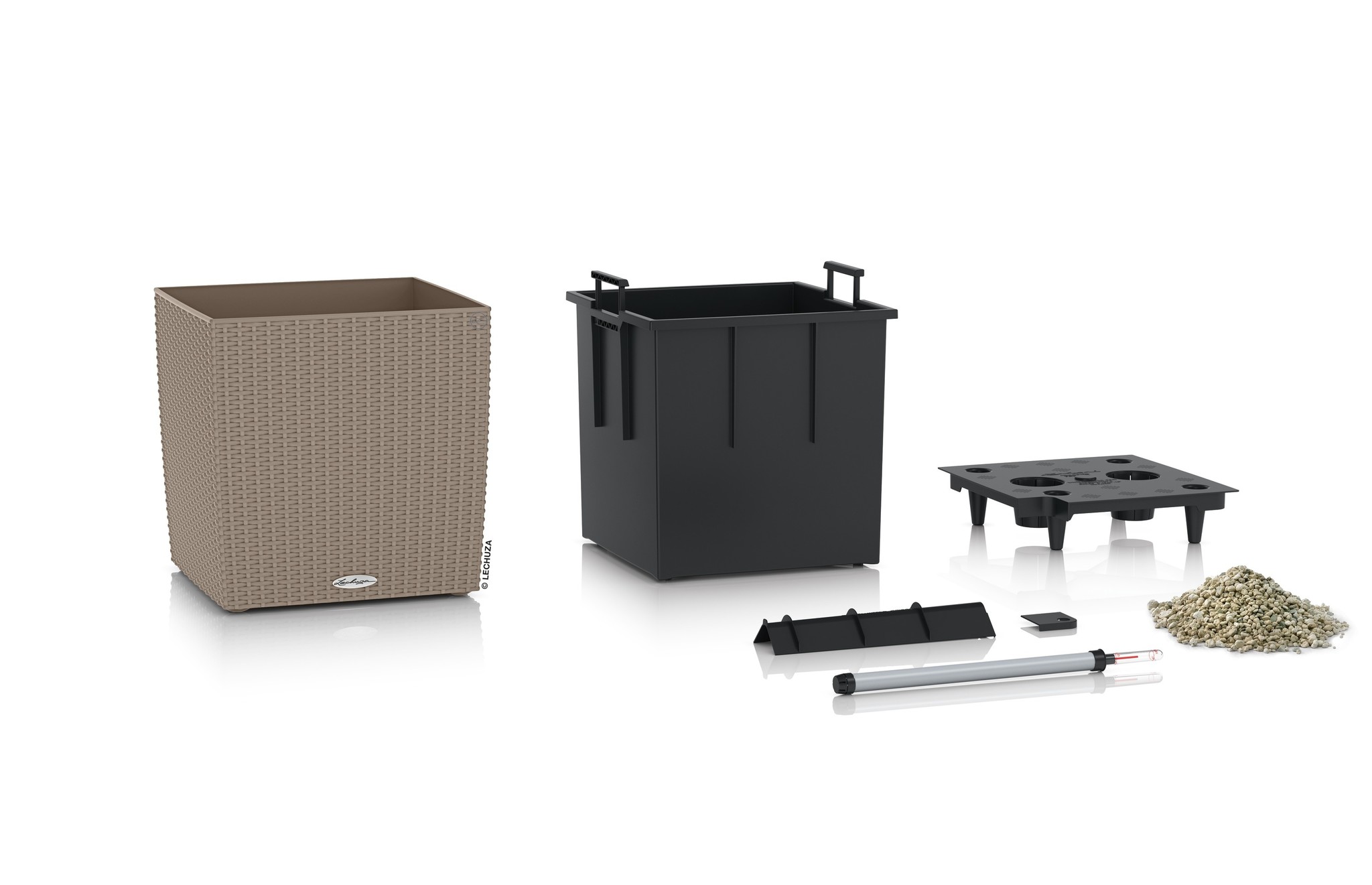 Lechuza CUBE Cottage kiemelhető belsővel és önöntöző készlettel: 40x40x40 cm Sand Brown
