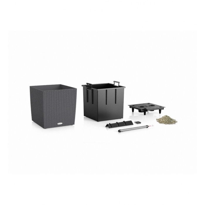 Lechuza CUBE Cottage kiemelhető belsővel és önöntöző készlettel: 40x40x40 cm Graphite