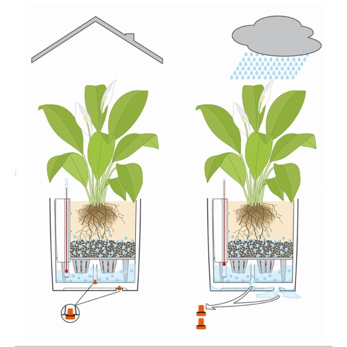 A fonott külső könnyed mediterrán hangulatot ad ennek a növénytartónak, az időjárásálló alapanyag, illetve az önöntöző rendszer kiválóan alkalmassá teszi nemcsak beltéri, de kültéri használatra is.