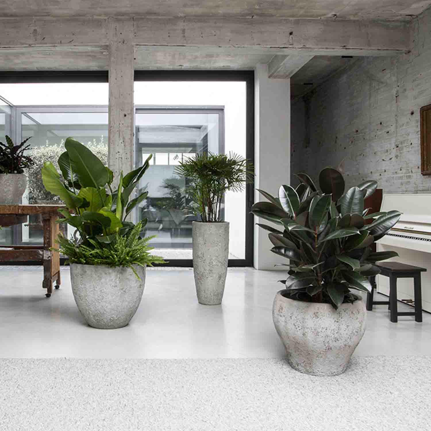 A kaspó alapanyaga az úgynevezett ficonstone, amely cement, homok és üvegszál optimális keveréke. Ez az összetétel rendkívüli stabilitást és tartósságot biztosít, miközben a súlya (kb. 9,5 kg) lehetővé teszi a biztonságos mozgatást. Bár az anyag természetes összetevőket tartalmaz, nem tűzveszélyes, így középületekben is biztonsággal alkalmazható.